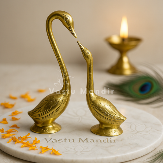 Swan Pair 100% Pure Brass Statue Idol Decorative Showpiece for Home, Office and Gifting by Vastu Mandir