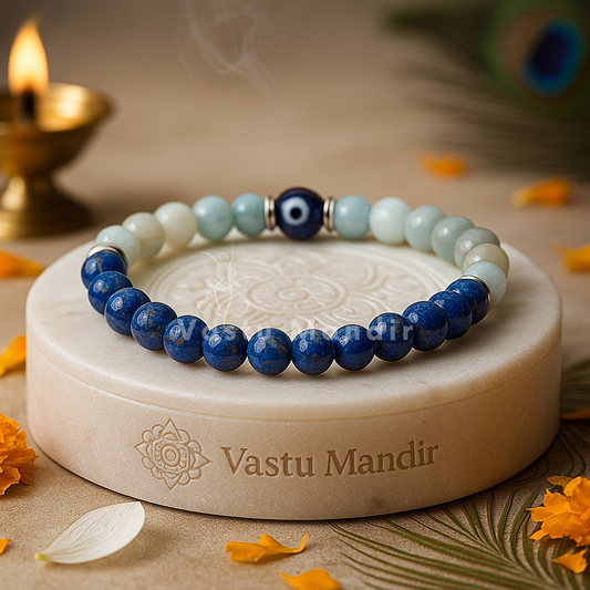 Virgo Zodiac Healing Bracelet 8mm — Aquamarine & Lapis Lazuli Vastu Remedy Mental Clarity