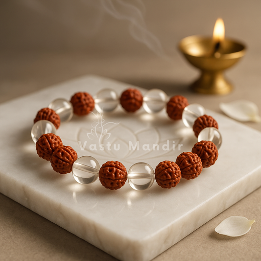 Rudraksha Crystal Bracelet 8mm for Vastu Remedy & Spiritual Protection — Rudraksha with Clear Quartz for Stress Relief & Mental Clarity By Vastu Mandir