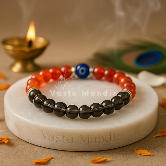 Capricorn Zodiac Healing Bracelet 8mm — Smoky Quartz & Carnelian, Vastu Remedy for Discipline & Success