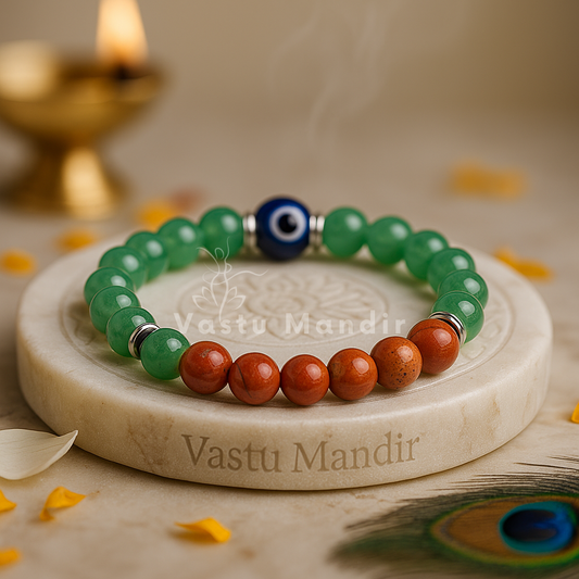 Cancer Zodiac Healing Bracelet 8mm — Aventurine & Red Jasper, Vastu Remedy
