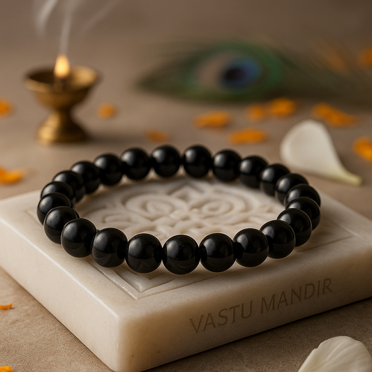 Premium Natural Black Obsidian 8mm Bead Bracelet, Vastu Remedy for Protection & Willpower