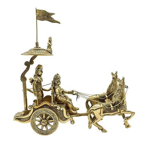 Krishna and Arjuna's 100% Pure Brass 2-Horses Rath Statue Idol Decorative Showpiece for Home, Office, Living Room by Vastu Mandir