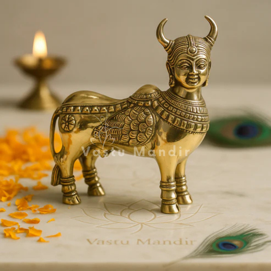 Nandi Bull 100% Pure Brass Statue Idol Decorative Showpiece for Home, Office and Gifting by Vastu Mandir