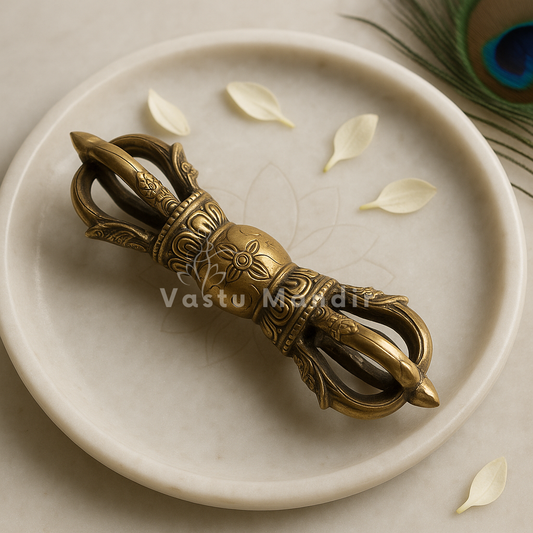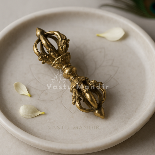 Brass Vajra (Medium) – Pure 100% Brass Dorje Ritual Tool for Puja, Tibetan Meditation, and Home Temple Décor by Vastu Mandir