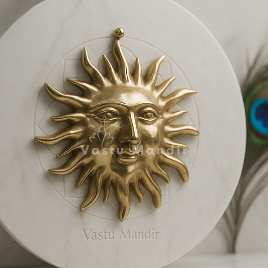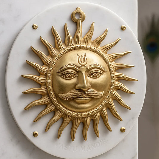 Premium 100% Pure Brass Sun Face Surya Mukh Wall Hanging Idol Sculpture Vastu Remedy — Handcrafted Brass God Idol for East Direction Dosh Correction, Fame & Positive Energy | Vastu Mandir