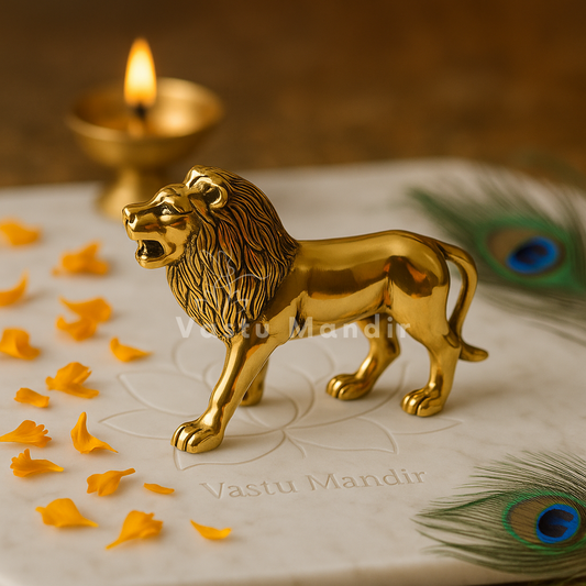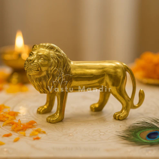 Brass Lion Idol – 100% Pure Brass Statue for Home, Office, Vastu & Decorative Showpiece by Vastu Mandir