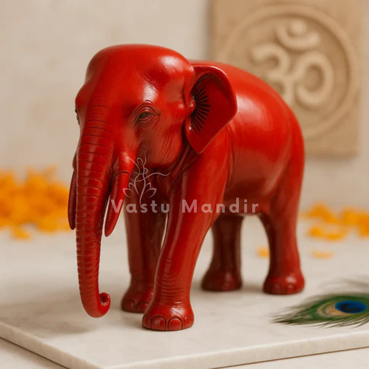 Red Elephant 100% Pure Brass Statue Idol Decorative Showpiece in Red Color for Home, Office and Gifting by Vastu Mandir