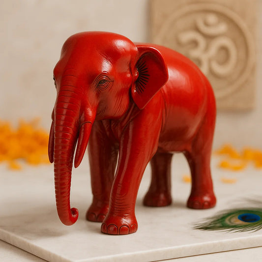 Red Elephant 100% Pure Brass Statue Idol Decorative Showpiece in Red Color for Home, Office and Gifting by Vastu Mandir
