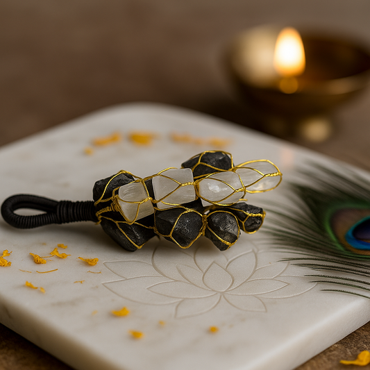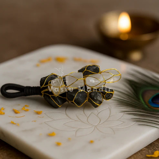Authentic Vastu Dual Healing Chunk — Black Tourmaline & Selenite Energy Shield