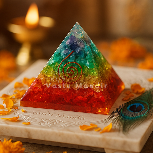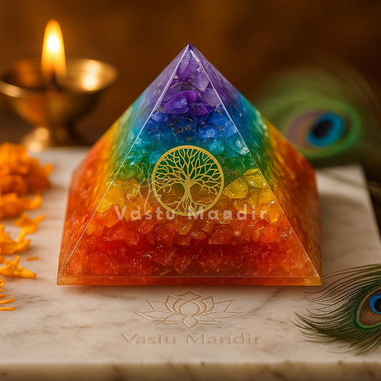 Premium 7 Chakra Orgone Pyramid for Vastu Remedy, Reiki Healing & Energy Amplification — Crystal Gemstone, Tree of Life, Aura Cleansing, Home Decor, 75–80mm, by Vastu Mandir