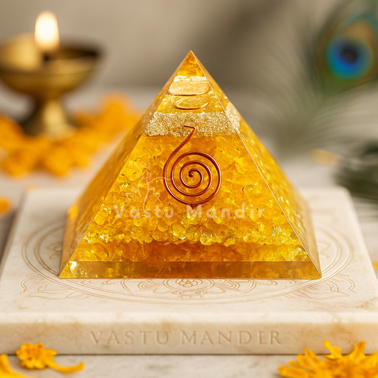 Yellow Citrine Orgonite Pyramid for Wealth, Abundance, & North Vastu Zone Activation | Real Money Magnet Crystal By Vastu Mandir