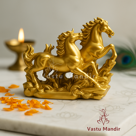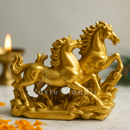 Two Golden Running Horses Statue in Premium Quality Decorative Showpiece Resin Article for Home and Office Decor by Vastu Mandir