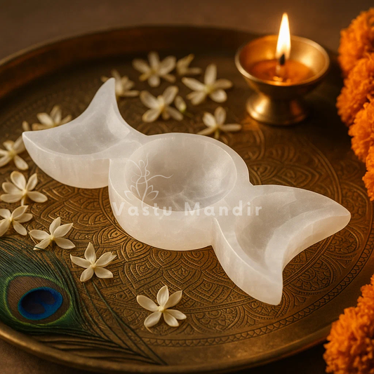 Triple Moon Shape Selenite Bowl – Natural Crystal Vastu Remedy for Cleansing, Charging & Positive Energy | Meditation, Healing & Home Décor by Vastu Mandir
