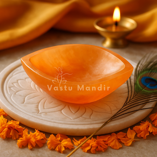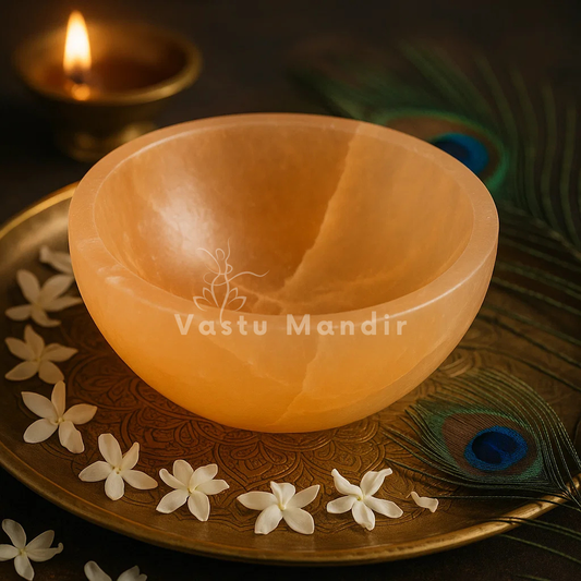 Orange Round Selenite Bowl – 15 cm Natural Crystal Vastu Remedy for Cleansing, Charging & Positive Energy | Home, Meditation & Décor by Vastu Mandir