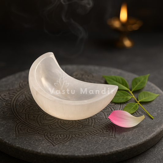 Moon Shape Selenite Bowl – 100% Natural Crystal Vastu Remedy for Cleansing, Charging & High-Vibration Energy | Meditation, Healing & Home Décor by Vastu Mandir