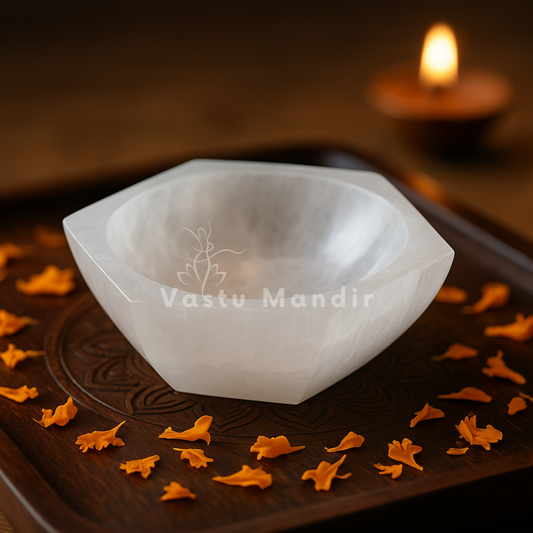 Hexagon Shape Selenite Bowl – Natural Crystal for Cleansing, Charging & High-Vibration Energy | Meditation, Vastu & Home Décor by Vastu Mandir