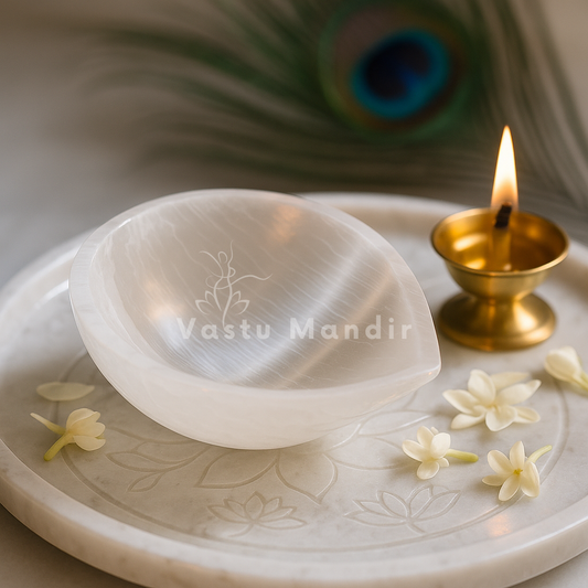 Diya Shape Selenite Bowl – Natural Crystal for Energy Cleansing, Crown Chakra Activation & Crystal Charging | Meditation, Vastu & Home Décor by Vastu Mandir
