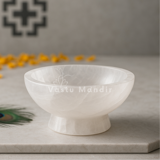 Round Shape Selenite Bowl – 100% Natural Crystal Vastu Remedy for Cleansing, Charging & Energy Purification | Home, Meditation & Décor by Vastu Mandir