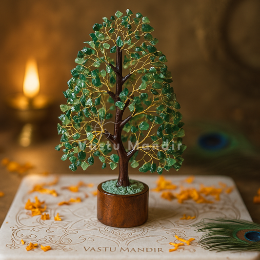 Premium Green Aventurine Vastu Tree (600 Beads, 12 Inch) for Luck, Wealth Flow, and New Opportunities | Money Magnet Crystal Tree for North Zone By Vastu Mandir
