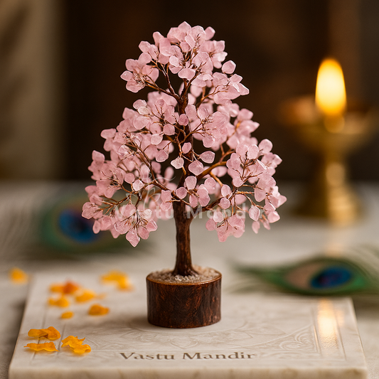 Rose Quartz Vastu Tree (10 Inch) for Love, Compassion, and Heart Healing | Vastu Crystal Tree for Relationship Harmony By Vastu Mandir