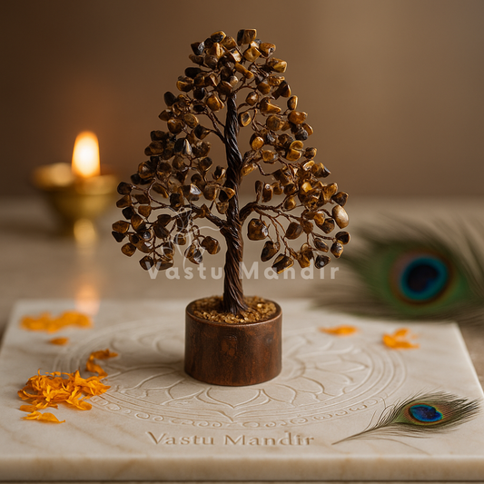 Premium Tiger Eye Vastu Tree (600 Beads, 12 Inch) for Courage, Strategic Clarity, and Grounding | Vastu Crystal Tree for Personal Power By Vastu Mandir
