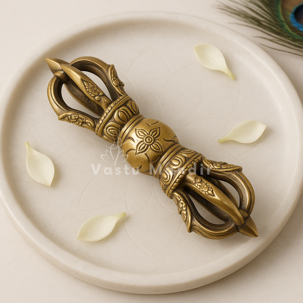 Vajra is known for its ability to dispel negativity and bring stability, and this one does just that! I placed it near my entrance as per Vastu principles, and I feel a strong sense of protection in my home. The antique brass finish adds a divine charm.