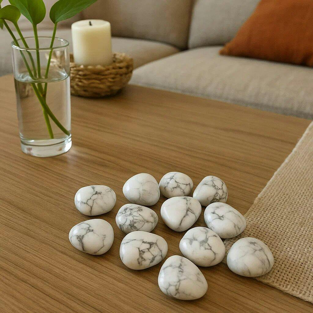 - Howlite : A calm and peaceful stone – Helps to reduce anxiety and stress – Encourages emotional healing and removing selfish, rude and greedy behaviors – Helps the bones. It will help you get rid of your stress and anxiety because Howlite is also a powerful calming stone. This stone will also work in giving you the strength to let go of unhealthy attachments and old emotional pains. It can soften or remove your anger, your aggressiveness, and your being unreasonable.
