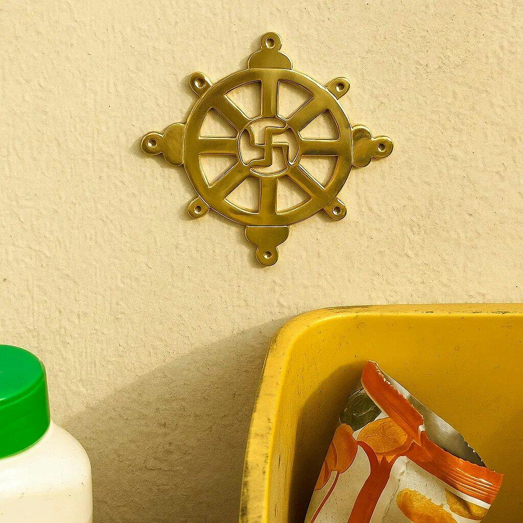 Enhance the spiritual energy of your home, temple, or office with this beautifully crafted Brass Dharmachakra with Swastik. A powerful symbol of divine harmony and positivity, this sacred wall décor blends two of the most auspicious symbols in Hinduism, Buddhism, and Jainism—the Dharmachakra (Wheel of Dharma) and the Swastik—to attract peace, prosperity, and spiritual well-being.