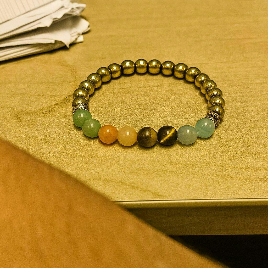 The Career Success Bracelet is designed to support focus, confidence and steady progress at work. Wear it to center the mind before interviews, presentations, appraisals or new projects. The balanced mix of stones offers clear intent while the metallic accents add a premium look for office wear.