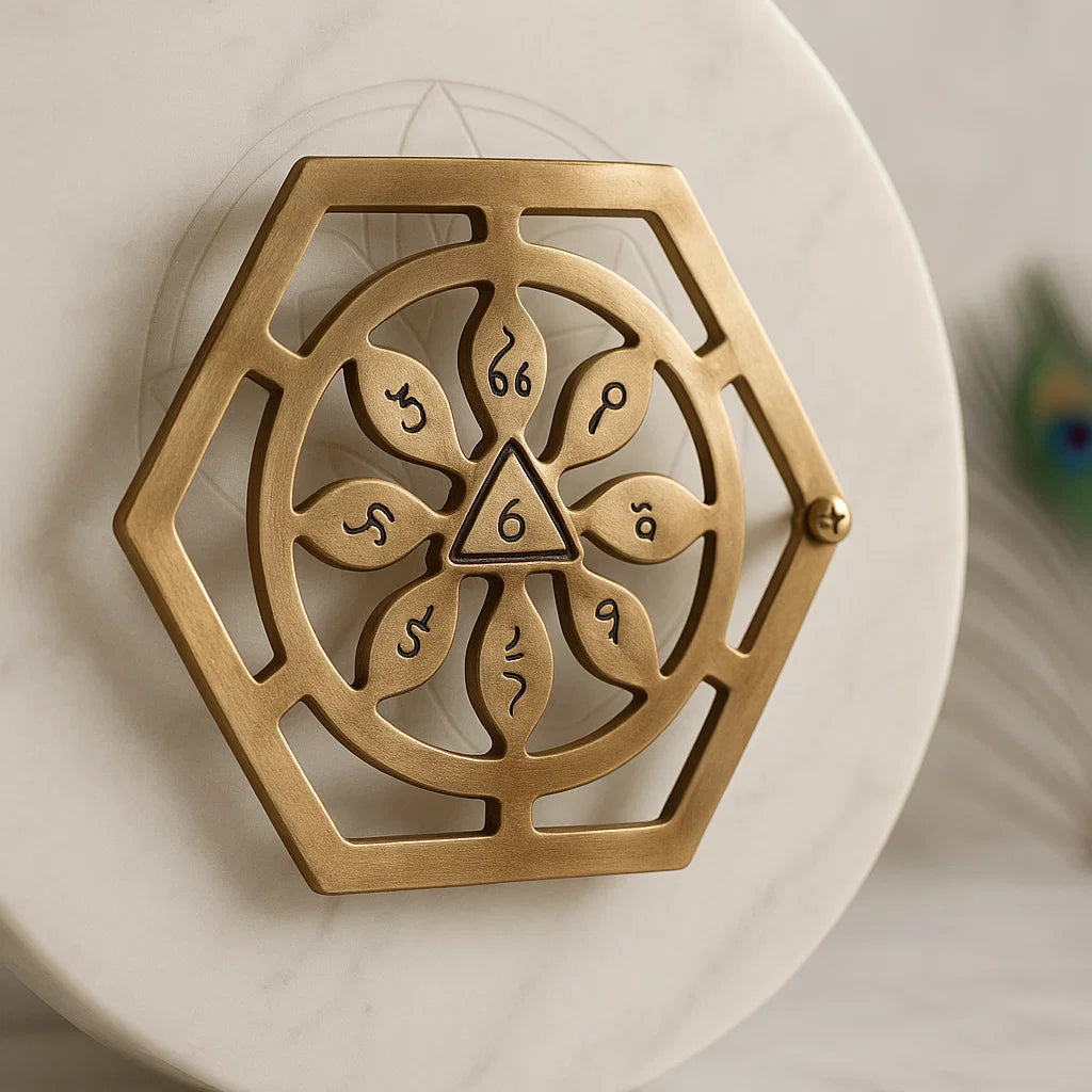 MATERIAL:- 100% Pure Copper SIZE:- 6x6 inch SHAPE:- Hexagon USAGES: Main entrances, puja rooms, or workspaces ZONAL PLACEMENT:- South, South-West Direction