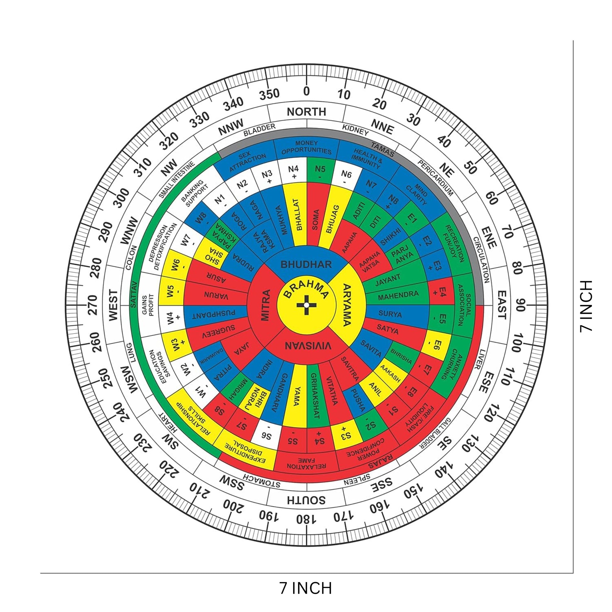 Along with marking different Devtas located at different locations, a tool used by Vastu Consultants to mark 32 Entrances and 16 Directions is Shakti Chakra. It is also indicates elements used to block negative entrances and gives you marking of 5 elements along with marking of Rajas Sattava Tamas.