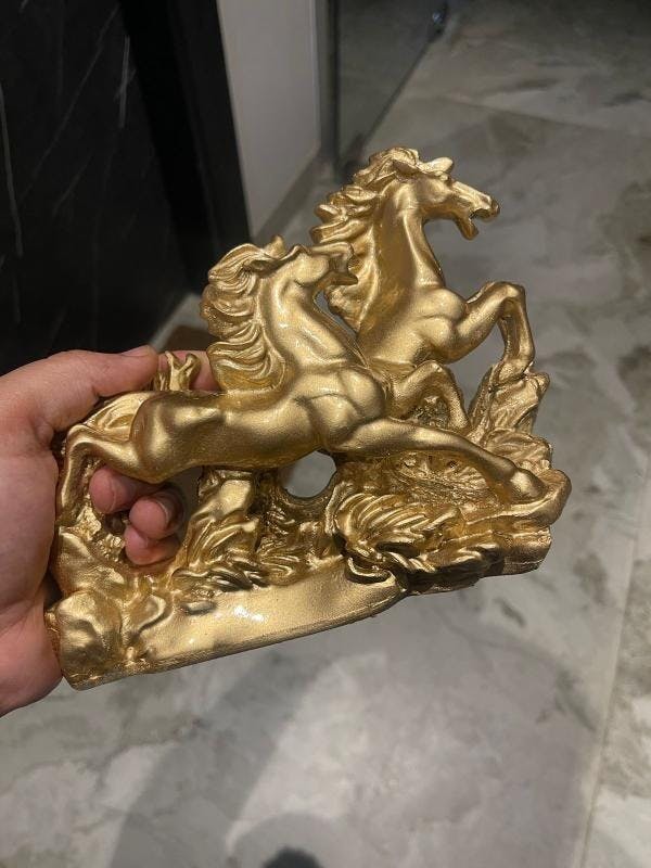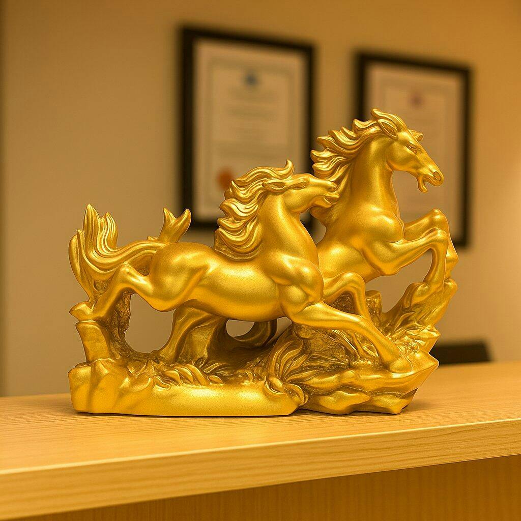A pair of Golden Horses is highly symbolic, representing good fortune, wealth, stability, control, vitality, and nobility. For optimal results, it is recommended to place this horse in the southwest corner of a room or office to enhance mobility and attract desired respect, fame, and popularity in one's life.