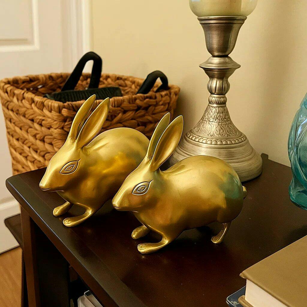 Vastu Mandir's Pair of Golden Brass Rabbits