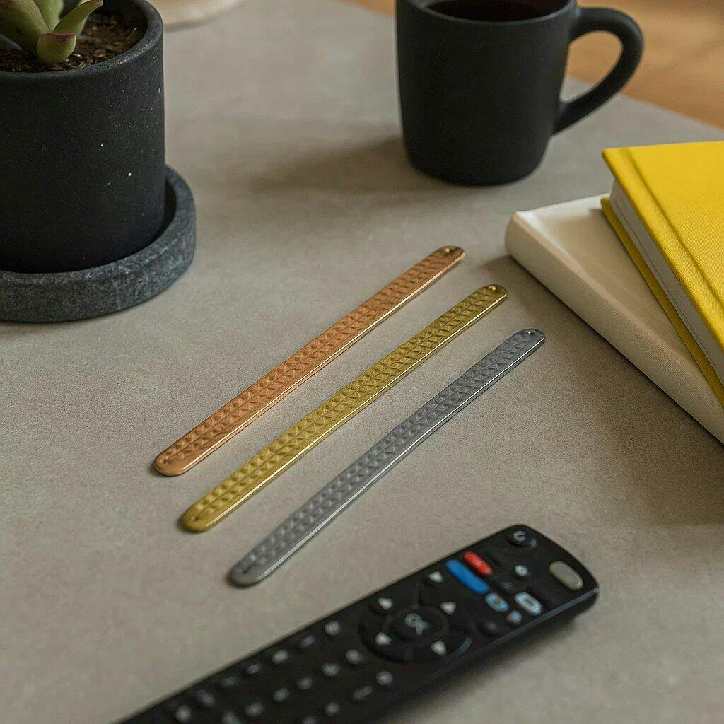 Continuous pyramid embossed strip measuring 10.5 inches for creating virtual partitions and cutting extended spaces without physical construction. Available in copper, brass, and lead—each featuring multiple pyramids in unbroken pattern for maximum energy division. The extended length provides superior coverage for larger doorways, room divisions, and irregular plot corrections requiring stronger energy barriers.