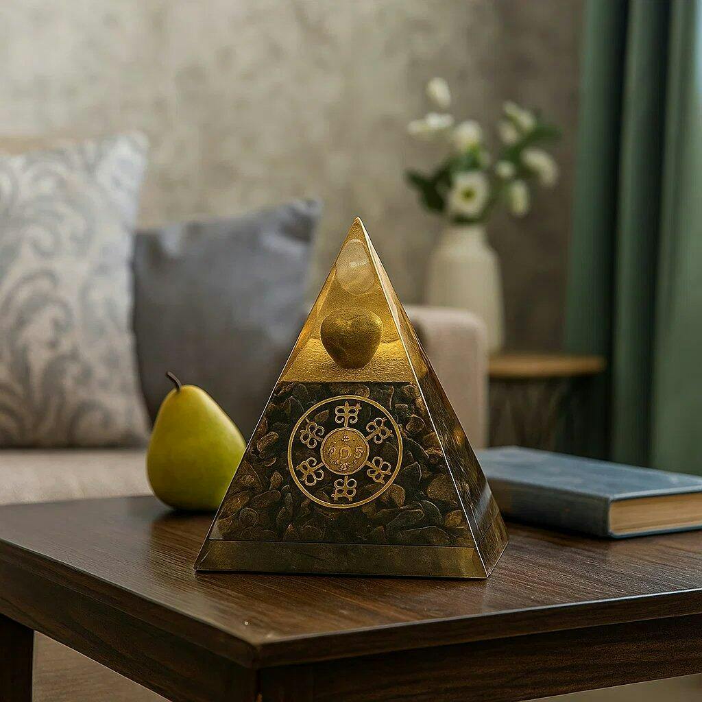 Every pyrite coin pyramid is unique—stone sizes, color pattern, and coin engraving will vary. Minor imperfections are natural in this handmade energy tool. Each piece checked for polish and precise coin alignment.