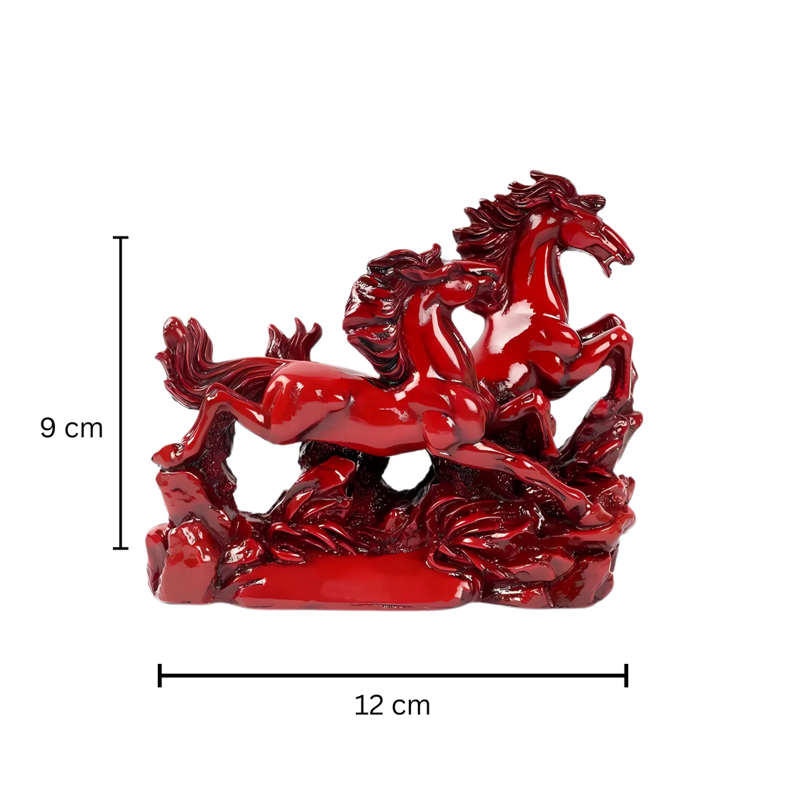 Two Red Running Horses Statue in Premium Quality Decorative Showpiece Resin Article for Home and Office Decor by Vastu Mandir